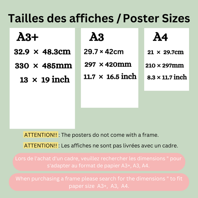 Bienvenue chez RosiArtClub, où l'art contemporain rencontre l'élégance soigneusement sélectionnée. Nos impressions, méticuleusement réalisées sur du papier mat d'archives de 189 g/m², garantissent des couleurs durables. Chaque œuvre est dotée d'une bordure délicate et est soigneusement emballée pour une livraison sécurisée. Veuillez noter que de légères variations de couleur peuvent survenir en raison des différences d'écran. Expédiées roulées dans des tubes en carton solide ou à plat dans des enveloppes robustes, les cadres ne sont pas inclus. Guide des tailles : A4 (21 x 29,7 cm), A3 (29,7 x 42 cm), A3+ (32,9 x 48,3 cm). Nous livrons dans le monde entier. Les commandes sont traitées sous 1 à 3 jours ouvrés et expédiées via Colissimo, Delivengo, etc. Les frais de retour sont à la charge de l'acheteur ; veillez à ce que les retours soient dans leur état d'origine. Explorez notre collection pour trouver l'art qui vous parle. Merci de votre visite ! - Rosi